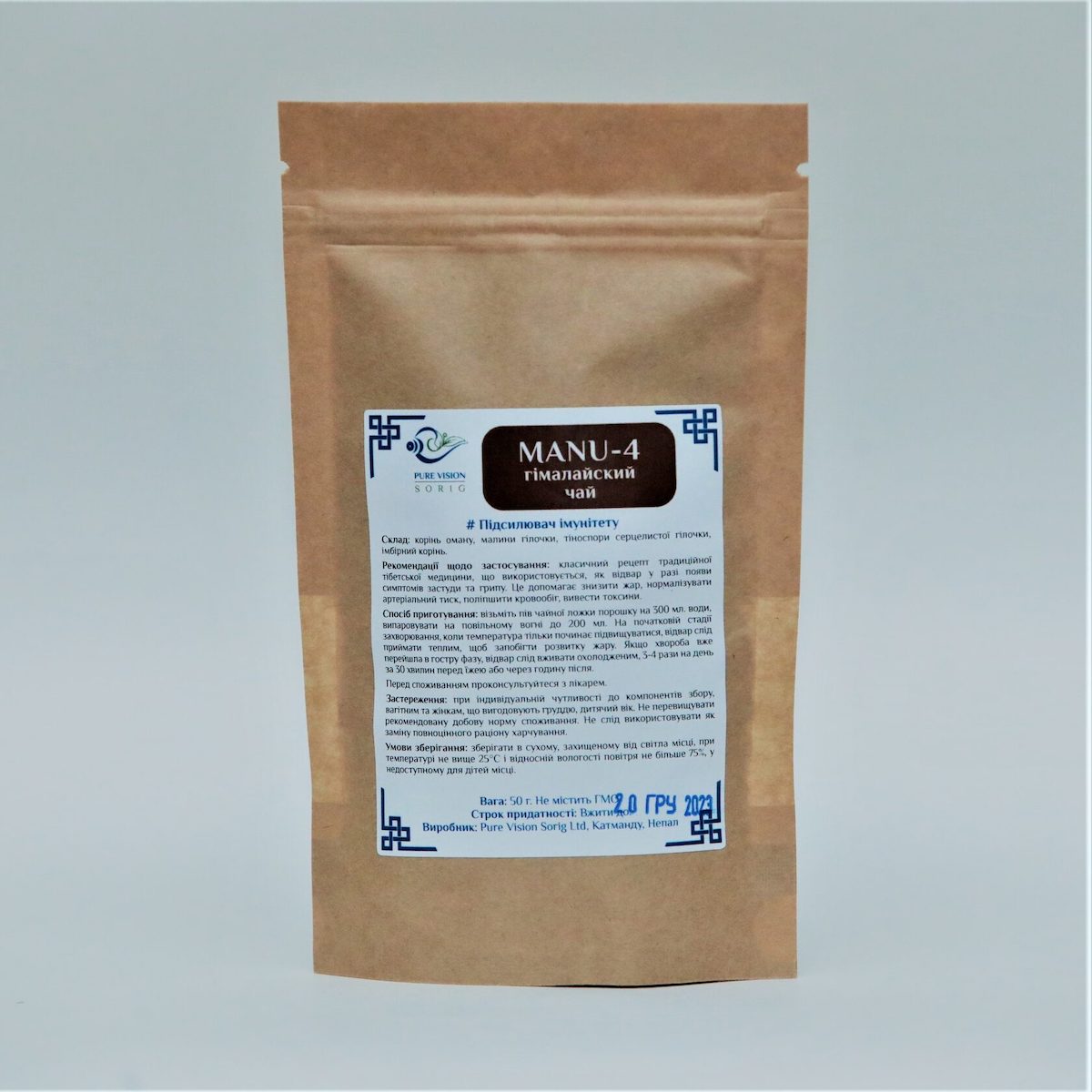 MANU-4 – гімалайський чай, створений за класичним рецептом традиційної тибетської медицини для зміцнення імунітету, що використовується як відвар у разі появи симптомів застуди чи грипу.